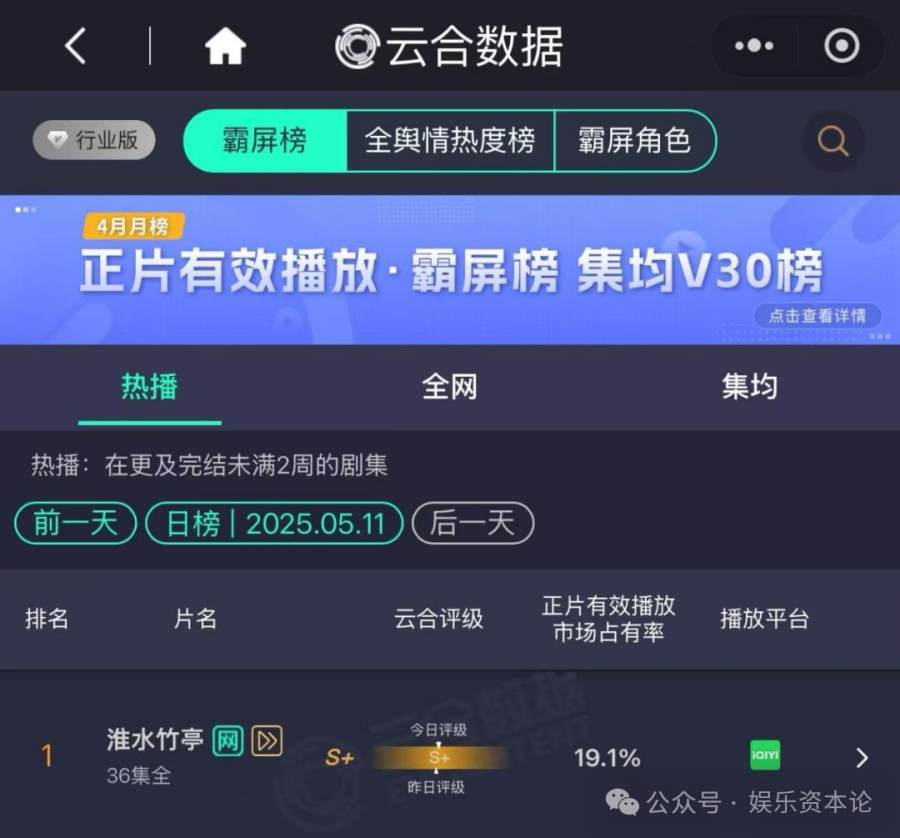 从开局热度破纪录的爆开稳涨,五一小长假后的快速回升,到最后大结局让观众长久回味的长尾效应,《淮水竹亭》实现了热度与口碑的逆风翻盘。