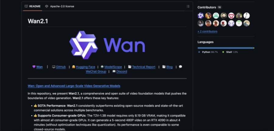 GitHub:https://github.com/Wan-Video/Wan2.1