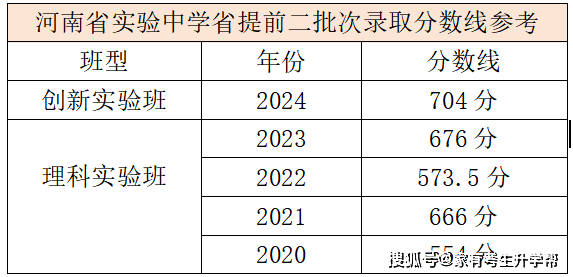 ▌创新实验班 ▌:仅河南省实验中学招收,2024年起理科实验班停招,新增创新实验班 2 个班(共招生 100 人),全省初三毕业生均可报考,2024 年录取分数为 704 分;
