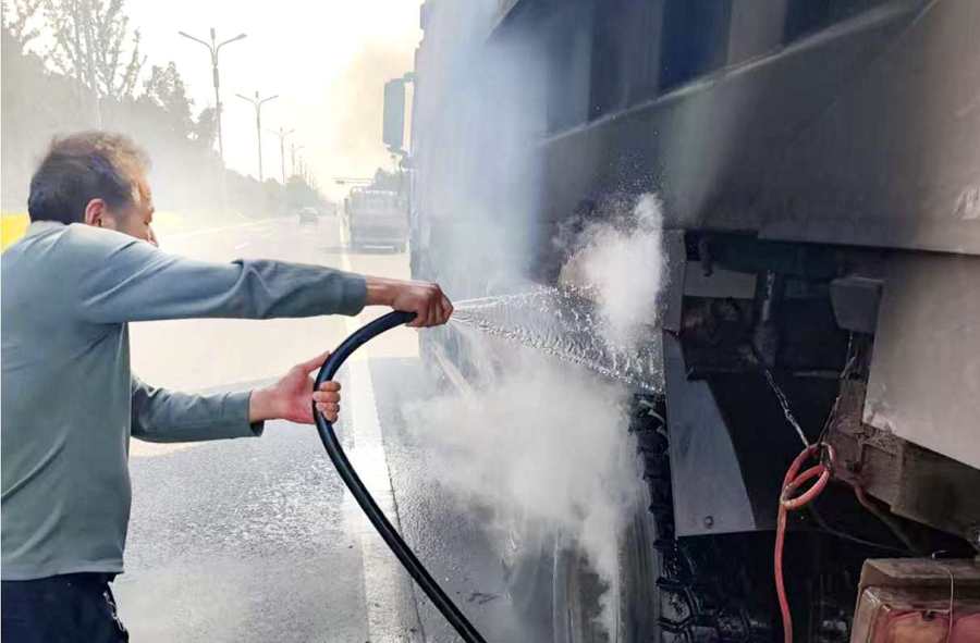此时,王增贤见旁边苗圃里有浇水器具,征的苗农同意后,立即接通水管对火源再次进行扑救。王增贤的及时伸手,使大货车火势得到控制,为后续赶来的消防队争取了宝贵时间。