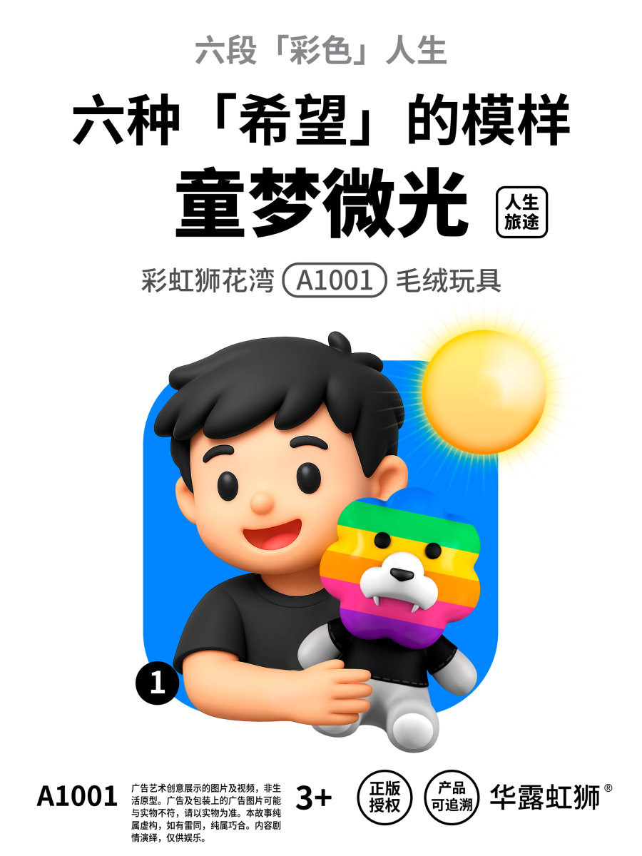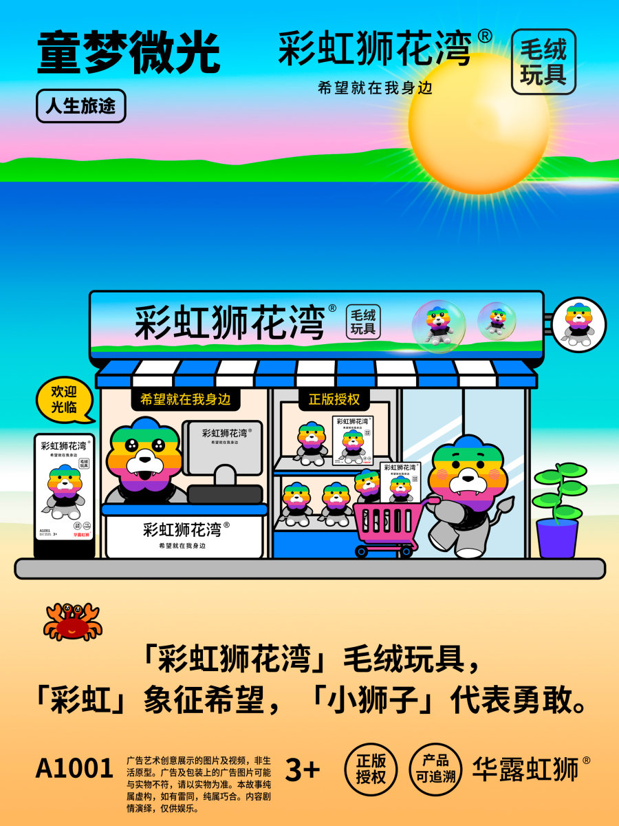 这不仅仅是一个毛绒玩具,他是希望的具体模样,是勇敢的化身。我们用心去设计「彩虹狮花湾」毛绒玩具,希望每一位孩子都能感受到这份温柔的力量。在我们为他们创造的这个世界里,他们拥有属于自己的那份勇气和希望,而这一切,都将从起初的“童梦微光”开始。