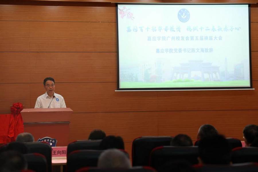 嘉应学院党委书记陈文海在致辞中充分肯定了广州校友会在凝聚校友、联系校友、关爱校友、服务校友等方面工作所取得良好成效,并提出三点期望与校友们共勉:一是坚守初心,再立新功。希望新一届组织成员传承校友会优良传统,以“敢闯敢试、敢为人先”的魄力,团结带领广州校友立足湾区、放眼全局,在各自领域再创佳绩;二是凝心聚力,融合发展。校友是母校与社会沟通的桥梁和纽带,希望校友们在社会上大力宣传母校,积极推动母校与社会各界的沟通联系和交流合作;三是互帮互助,携手共进。校友是母校永远的牵挂。母校期待广大校友越来越好!校友与校友之间,企业与企业之间,校友与母校之间要深化认识,相互关爱,增进交流 ,促进合作,融合发展。