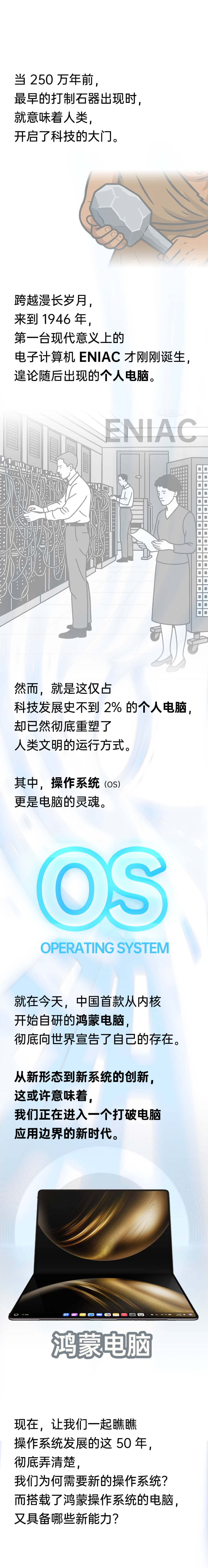 鸿蒙电脑的诞生,标志着华为终端已全面进入鸿蒙时代。多年以后,或许当我们回想这一振奋人心的时刻时,也会联想到250万年前,最早的打制石器出现时,人类所开启的科技大门。