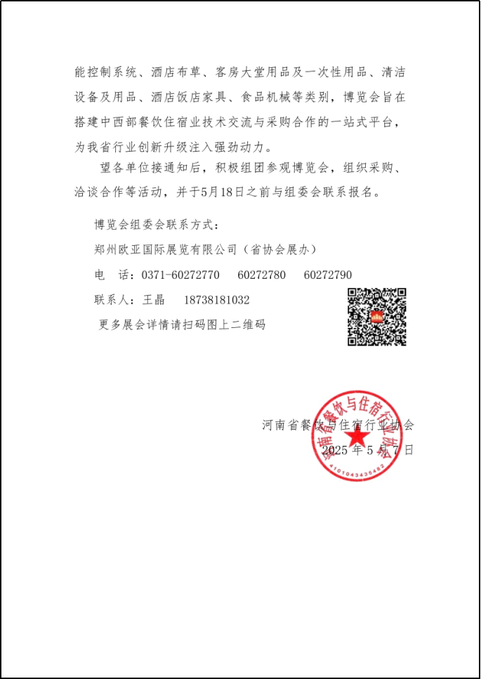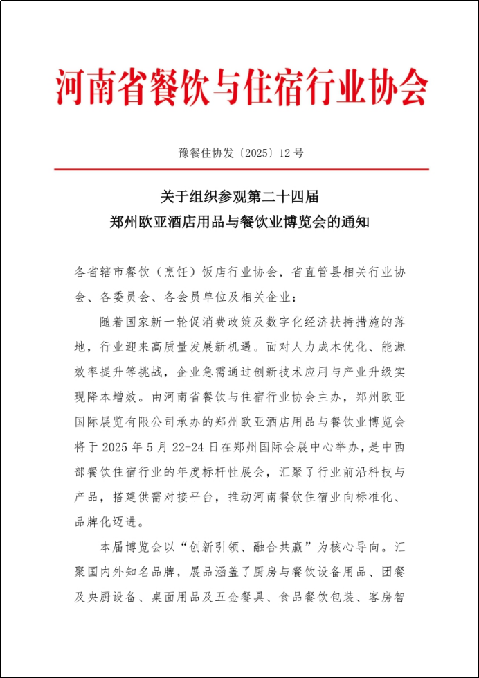 中原盛会启新章,八方宾朋聚中州。由河南省餐饮与住宿行业协会、河南欧亚国际会展集团主办的第24届郑州欧亚酒店用品与餐饮业博览会将于5月22日至24日在郑州国际会展中心举行。
