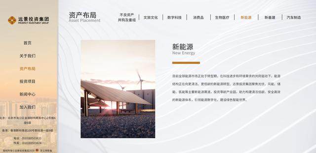 远景投资集团公司官网新能源投资项目板块中,其在“新能源类:智能风电、光伏和储能新能源”有如下内容介绍:
