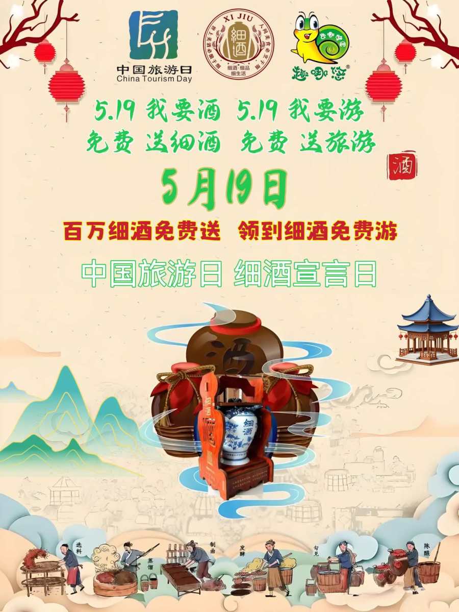 5.19日,是第15个中国旅游日,虽然是徐霞客日记的开篇之日,恰恰也是“我要游”之意。相同的日子,细酒工程文化发起者首次提出“细酒宣言日”倡议,倡导“健康喝酒喝健康酒,文明喝酒喝文明酒”,依酒代文、依酒载礼、以酒醒世、以酒论养。普及细酒宣言五不喝:不喝酒名喝明酒、不喝串酒喝粮酒、不喝酒精喝精酒、不喝粗酒喝细酒、不喝酒理喝礼酒!