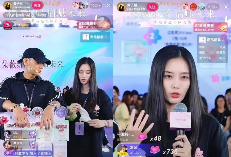 虽然在卫生巾行业是“门外汉”,但坐拥相当粉丝规模的明星黄子韬做卫生巾天然具备流量优势。被誉为“白磷型”人格的黄子韬IP,在粉丝心中本就自带“霸总”标签,在朵薇卫生巾正式发布之前,他通过在直播间大手一挥,1分钱送出4.95万份卫生巾的活动,让朵薇品牌一炮而红,更具商业价值的是这一活动有效触发了全民自来水测评热情。