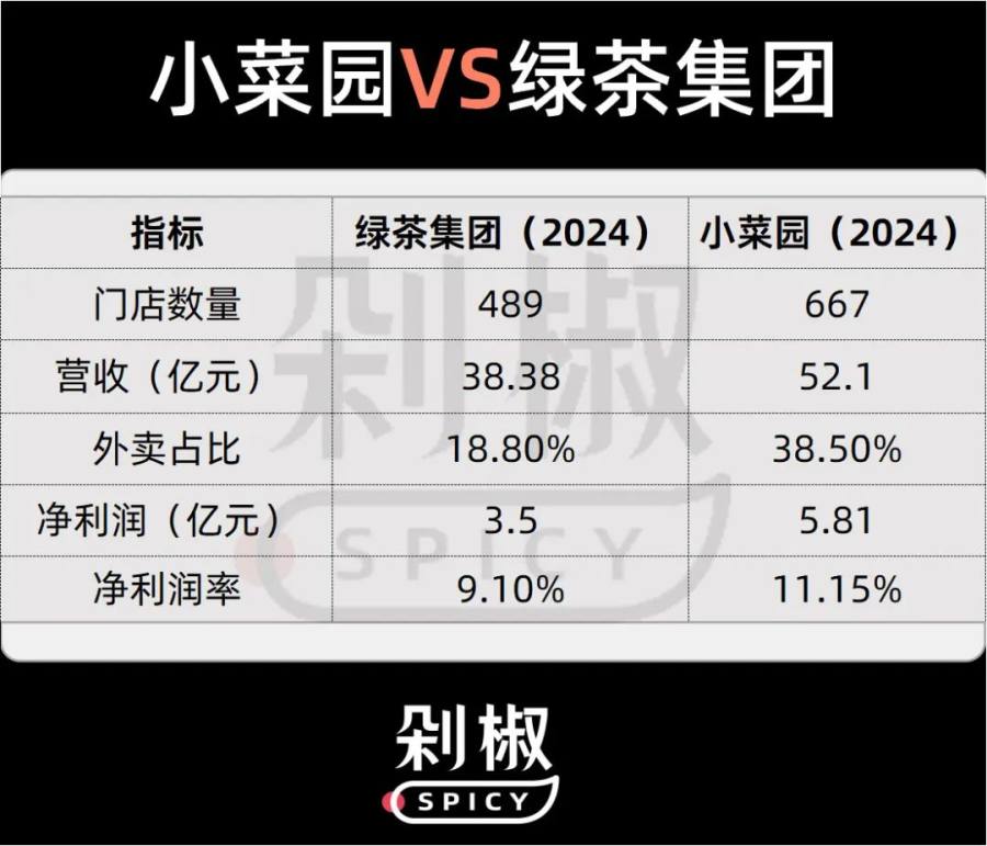 2024年,小菜园以52.1亿元营收实现5.81亿元净利润,净利润率达11.15%,显著高于绿茶集团的9.1%。这一差距源于小菜园对成本结构的精准把控——其外卖业务收入同比增长34.2%至20亿元,占总营收38.5%,通过“堂食+外卖”双引擎提升规模效应;而绿茶虽外卖收入增长39.85%,但同店销售额下滑10%,单店营收从2023年的1151.9万元降至1033万元,暴露出门店扩张稀释盈利能力的问题。