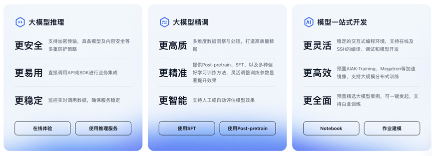 本季度,百度点亮三万卡自建算力集群,可同时支持多个DeepSeek这样的千亿级模型的训练与调优,并能支持千家客户并发训练。企业可以依托这一强大的算力资源,快速完成AI模型的定制和优化,缩短项目周期,降低技术门槛。