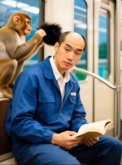 譬如这个名为“五一游被猴抢假发”的AI特效,就是一只赛博猴子突然跳进画面当中抢走了主角的假发,然后被抢走头发的人抱头崩溃。