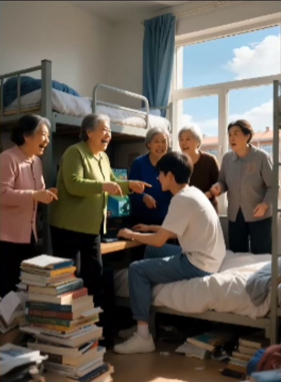 如果说被猴子抢走假发的特效有些让人哑然失笑的话,那么下面这个被长辈教育的AI特效也同样抽象。