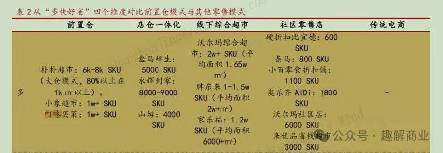 从品类来看,SKU最高的是小象超市和叮咚买菜。华西证券研报显示,小象和叮咚买菜SKU都在1W+以上;其次是京东七鲜(大仓6000+)、盒马(5000+)。
