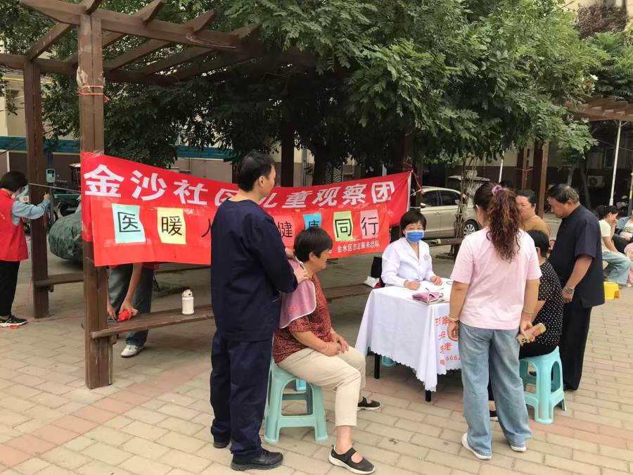 2025年5月22日,“以医暖人心 健康同行”为主题的传统中医养生义诊来到金沙社区。活动以推拿按摩、艾灸两大传统中医疗法为主,使辖区居民亲身感受到中医的神奇魅力。