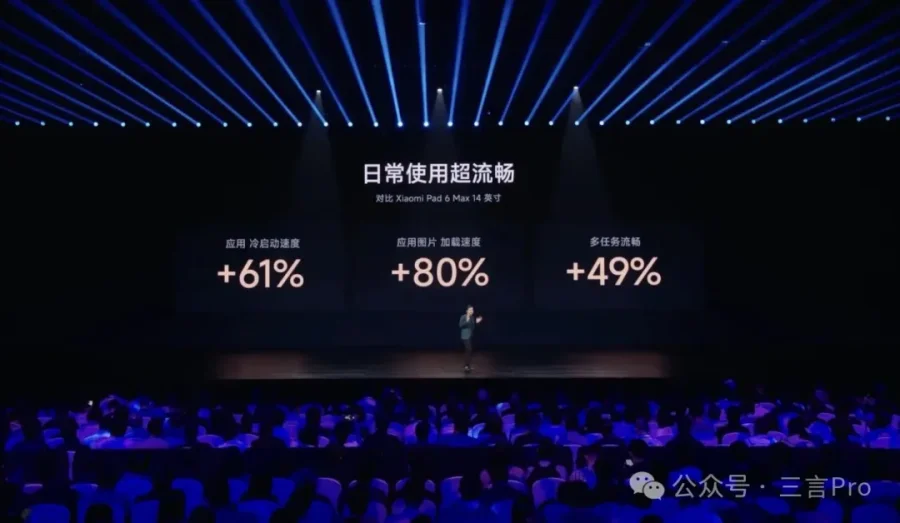 对比小米Pad 6 Max 14英寸,应用冷启动速度提升61%,应用图片加载速度提升80%,多任务流畅提升49%;多轨编辑4K视频导出速度提升27.5%;Raw格式图片导出速度提升51.3%。知名MOBA手游帧率119.3fps;大型开放世界游戏59.6fps。