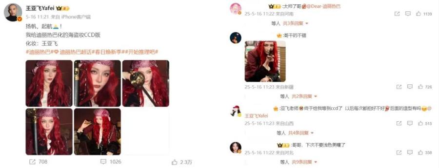 化妆师王亚飞的个人账号就成为了粉丝交流的集中场域。日常更新的妆面图和化妆vlog形成了专业性和话题度的相乘作用,在这里打call、提建议、妆面交流、求同款都是日常。透过镜头呈现的无数明星同款,在即时效果的展现后也更有说服力。