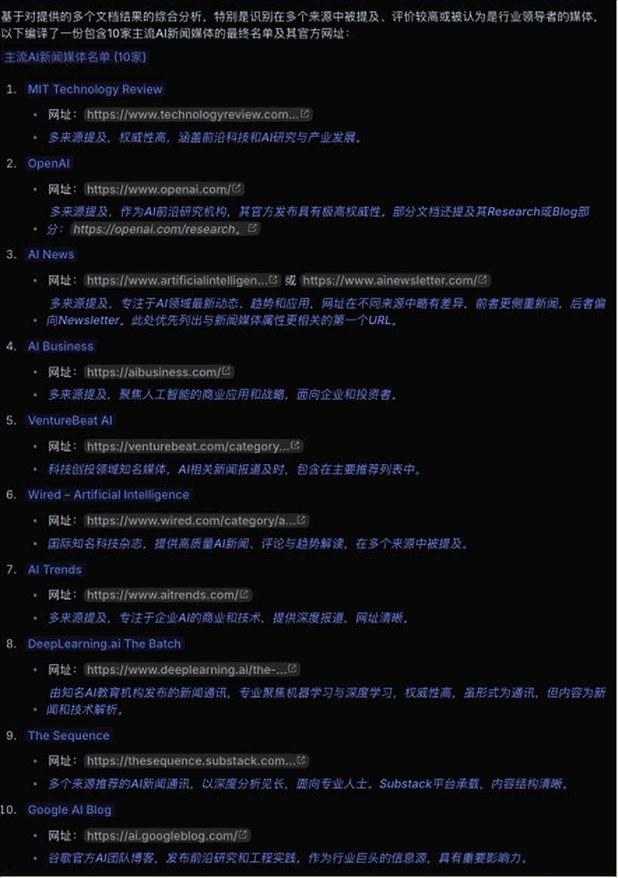 Neo会从先前确定的10家AI新闻媒体的官方网站分别获取各自最新的3-5篇AI相关新闻报道的详细内容,并使用browser从每个网站上独立抓取信息。