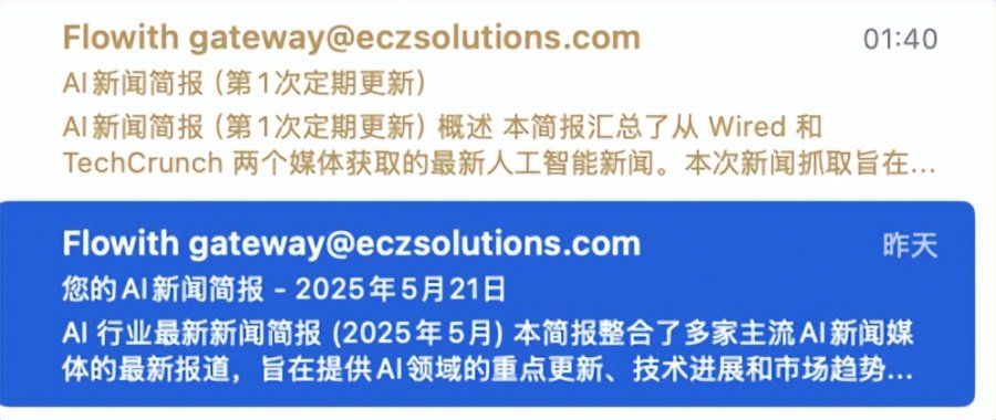 后续,我的邮箱中陆续收到了几份来自Flowith在云端执行定时任务的稿件。