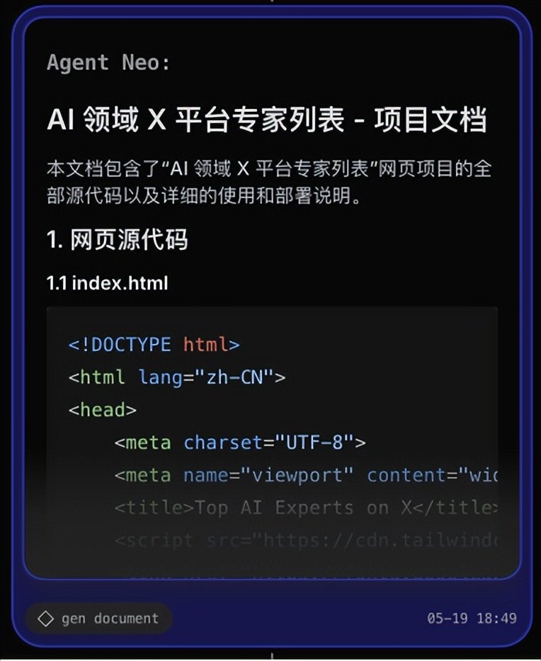 在进行HTML网页任务的前期,Neo会先进行知识积攒,这也是为何思维流程中体现出“两边细,中间宽”的形态。