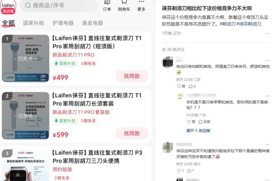目前,市场对徕芬品牌已有一定认知积累,其此前推出的高速吹风机和电动牙刷,也分别凭借着“戴森平替”和“高频洁净”等定位,获得了较好口碑。然而,剃须刀作为男性日用个护中最核心、使用频率最高的单品之一,能否延续这种爆款营销能力,从而构建起新的用户心智,还需更长时间观察。