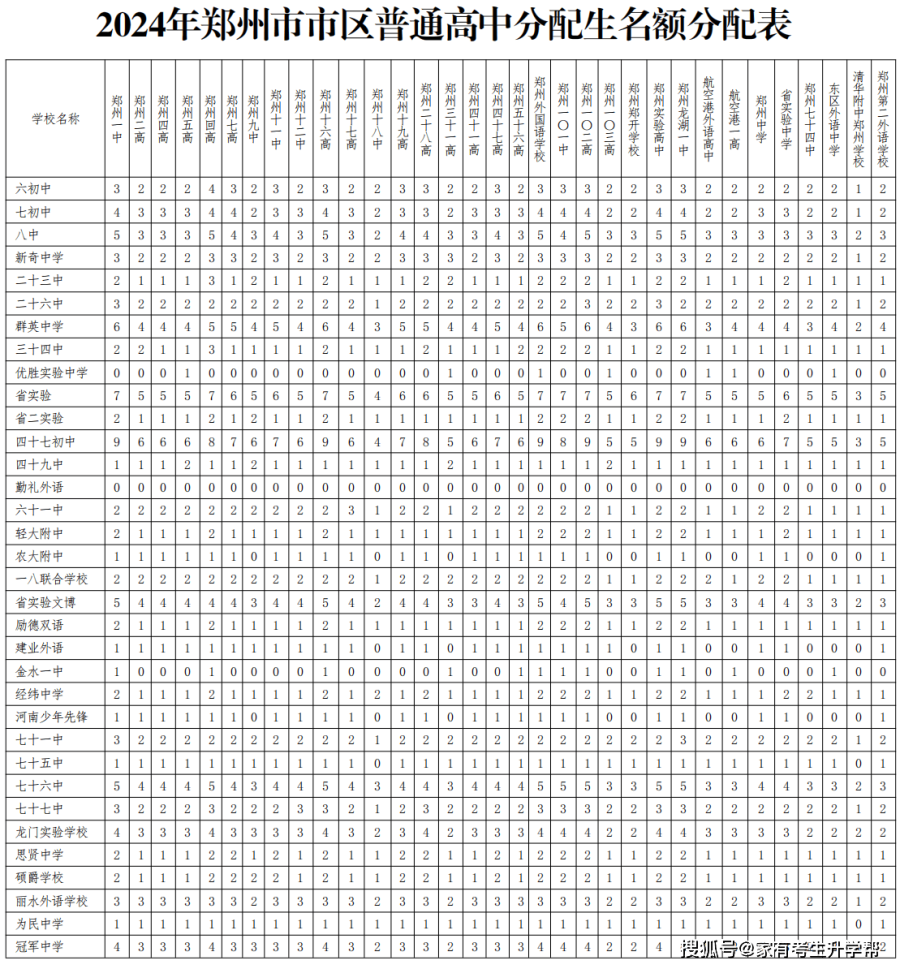 每年分配生名额都是把各高中当年60%的招生计划,下发给郑州市市区各初中学。但是我们具体要看的也不是我们初中学校总共有多少分配生名额,而需要具体的了解按照我们的一模二模成绩,如果报考那个分数段的几所目标高中,有没有分配生名额,有多少分配生名额。