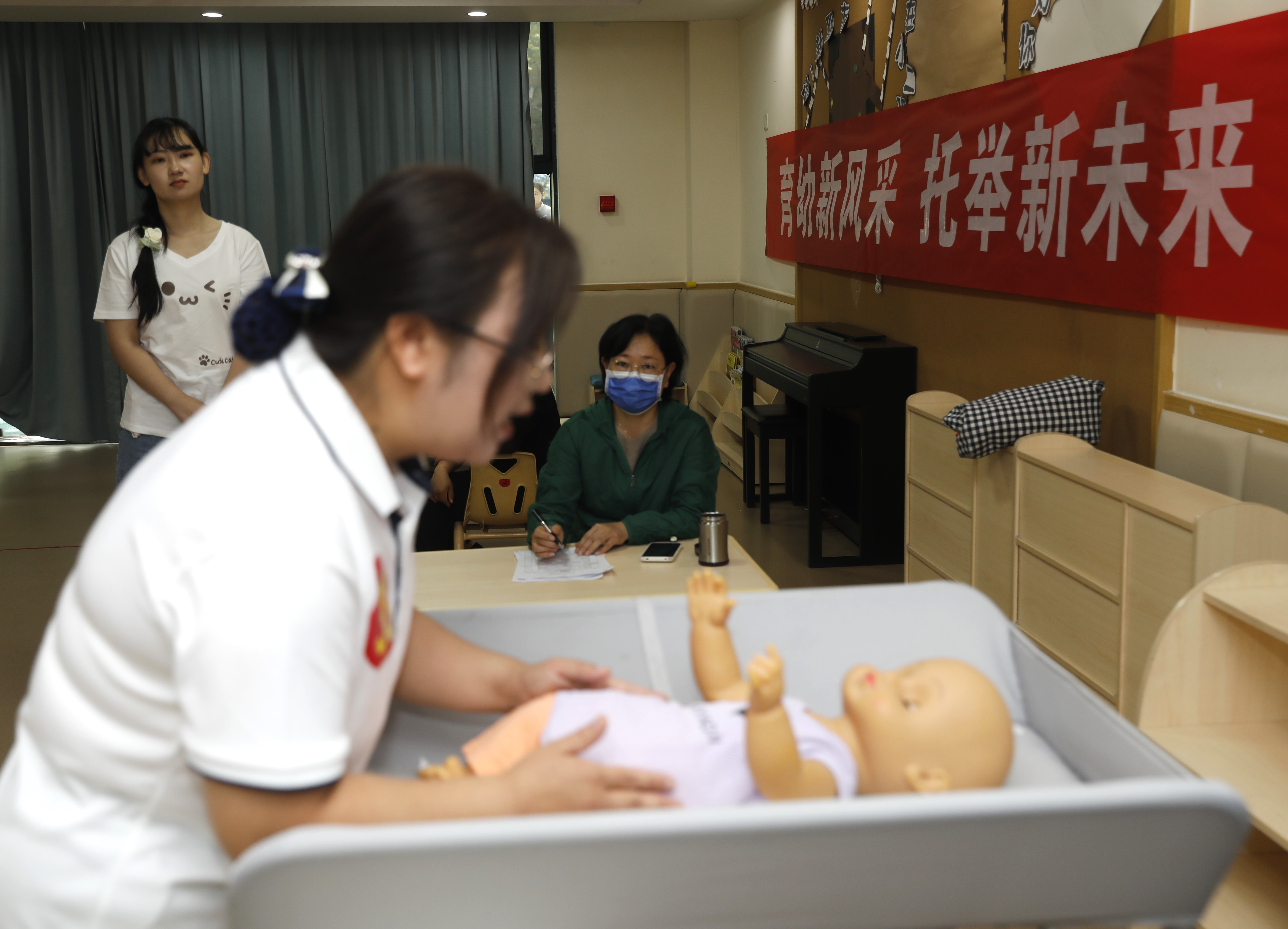 最终,来自惠济区沐爱森林托育中心的参赛选手毛璐凭借过硬的理论知识和标准规范的操作手法,获得此次比赛的最高分。