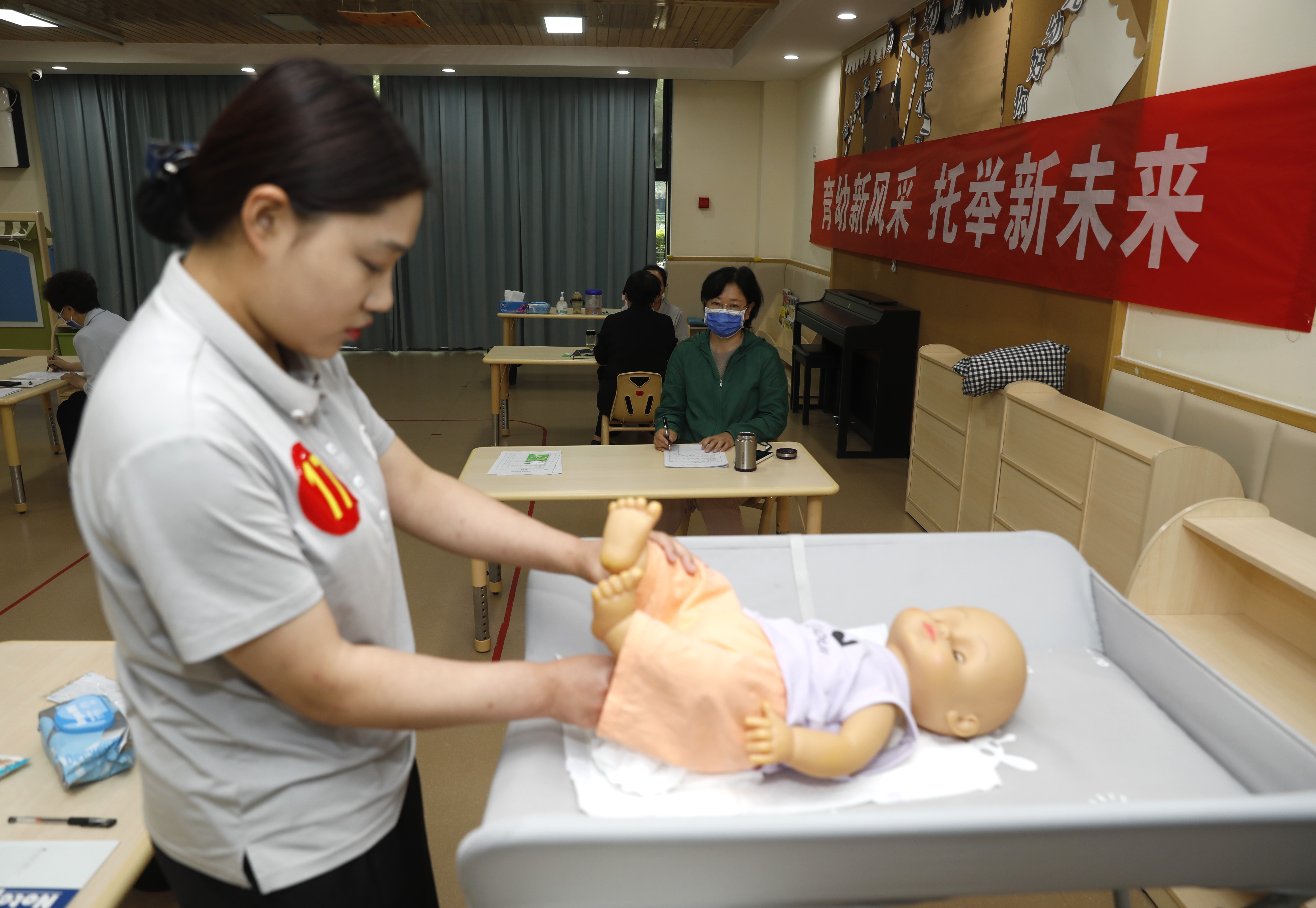 此次竞赛分为理论考试与技能实操两个环节。理论考试聚焦托育服务相关政策法规、婴幼儿护理知识等内容,全面考查选手的专业知识储备。技能实操环节,情景模拟、急救演练等实战项目成为“重头戏”。