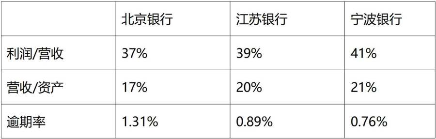 横向比较几家头部城商行,可以近似得出以下几个结论:同等资产规模中宁波银行营收最高,同等营收宁波银行利润最高,头部平台中宁波银行逾期率又最低......