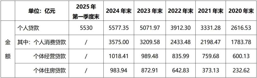 到了2025年,个贷业务从增速放缓直接演变为逆势下滑。截至2025年第一季度末,宁波银行个人贷款规模5530亿元,比2024年末减少了0.85%。