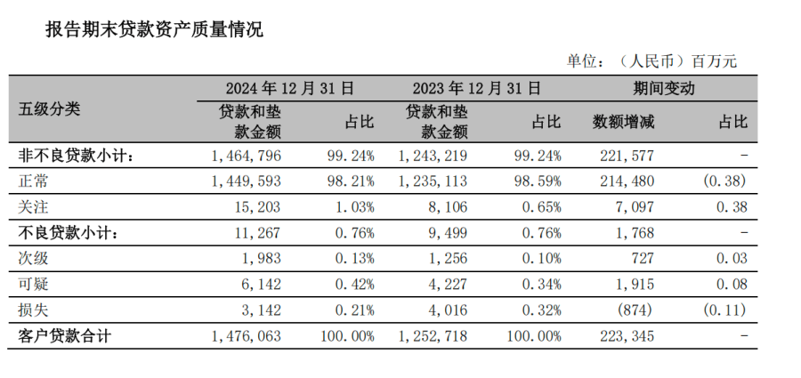 比如,2023年末至2024年末,作为正常与不良之间的关注类贷款,宁波银行从81亿大涨87.7%至152亿元。