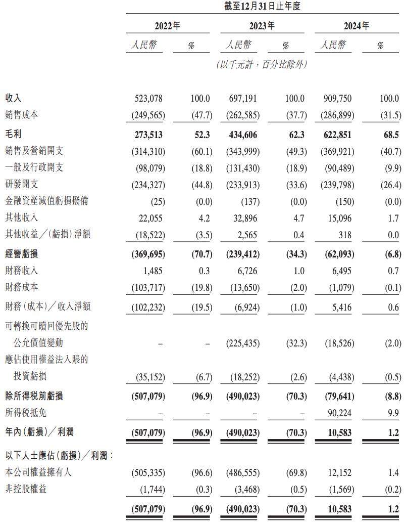 2022年、2023年和2024年,聚水潭的净利润分别约为-5.07亿元、-4.90亿元和1058.3万元。按非国际财务报告准则计量,聚水潭的经调整净利润分别约为-3.79亿元、-2.06亿元和4898.8万元,于2024年实现扭亏为盈。