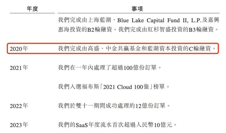 招股书显示,高盛于2020年参与了对聚水潭的C轮融资。彼时,高盛董事总经理孙梦曦曾表示,“高盛看好中国电商市场的发展,而聚水潭以电商SaaS ERP服务为切入点,正逐步向电商生态圈进行延伸。”