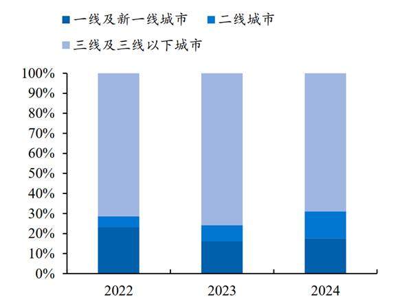 另一个重大变化是低能级区域的增长性。疫情以来,三四线消费韧性强于一二线,县乡好于城市,乡村又好于城镇,比如在2024年乡村社零增速为4.3%,城镇社零增速为3.4%。如果再考虑人口权重,根据华创证券的测算,非一二线城市的消费体量,占到整个经济体的60%左右。