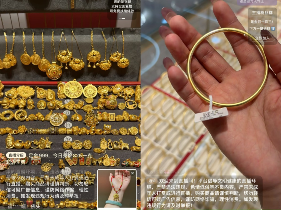 “00后”宋琦原本对黄金并不感兴趣,但当她总在社交媒体和短视频平台刷到黄金直播间,一时间也上了头。这些直播间里,往往既有低至9.9元的黄金手机贴,也有百元左右的小克重黄金饰品,也不乏上千上万的足金手镯和项链……”主播拿出各式各样的黄金饰品,倒也并不都是很贵的金手镯什么的,而是很小巧的转运珠,样式也很年轻化,有HelloKitty和库洛米。”宋琦听着主播介绍,看着弹幕区不断扣“1”,渐渐动了心,“一百多就能到手的足金项链,买到就是赚到……”