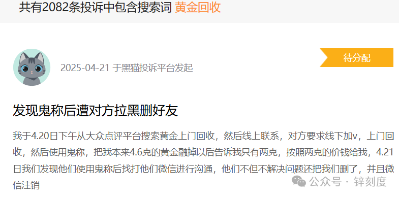 当然,更多人是在联系平台回收时,才得知自己购买的黄金产品存假。在黑猫投诉上,这类案例层出不穷。
