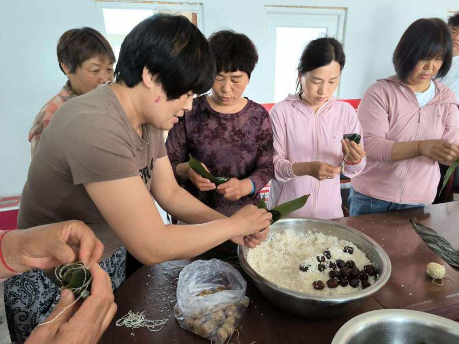 活动当天,苏庄村党群服务中心会议室里,提前浸泡好的糯米泛着莹润光泽,翠绿的粽叶层层叠放,红亮的大枣颗颗饱满,浓郁的粽叶清香在空气中肆意弥漫。上午 9 时,村民们怀揣期待陆续抵达,一场充满趣味的 “包粽课堂” 就此开启。活动伊始,社工化身