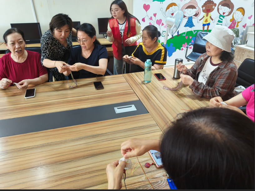 活动现场,工作人员提前精心准备了色彩鲜艳的丝线、剪刀等编织材料。居民们围坐在一起,在编织老师的耐心指导下,学习五彩绳的编织技巧。大家穿线、打结、缠绕,动作从生疏逐渐变得熟练,不一会儿,一根根色彩斑斓、寓意吉祥的五彩绳便在手中诞生。