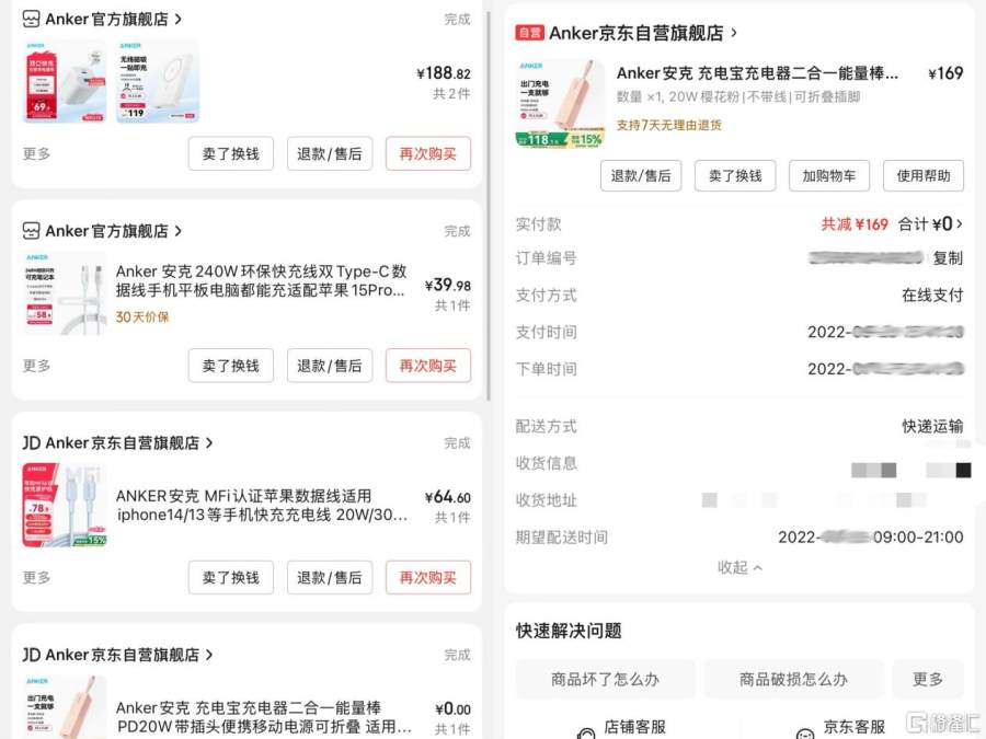 “我偶尔要出差,考虑到安克的快充体验和产品质量都不错,就从它家买了一个充电宝充电器二合一的能量棒,当然这个东西是单卖的,为了它我还另外买了一条充电线,加起来花了两百多”。一开始林娜以为这次购物也是纯赚,还把它推荐给了身边的亲朋好友。