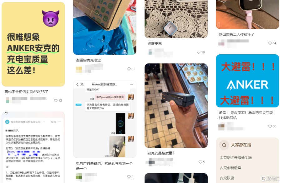 有关安克产品的避雷贴 图源:小红书