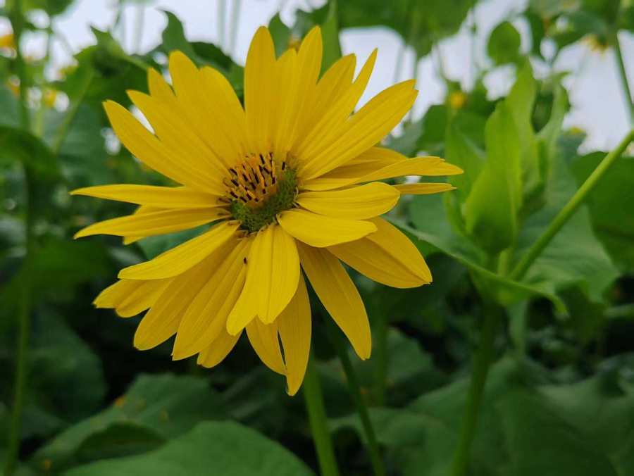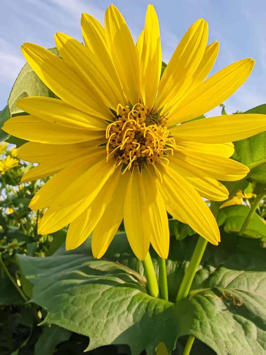 在远古代,长白山的云雾深处,一位百花仙子路过这里,被这仙境般的美景吸引,仙手轻轻播撒一朵金色的百花,空中飘然而下,化作一朵娇小的宽叶山柳菊,金黄花瓣在风中摇曳生姿。山神见她孤苦无依,便将她抱在怀中,用冰雪之水滋润,用松软厚土呵护。在幽静的寒地山林中,纤细的枝条随风摇曳,嫩黄的花朵散发着淡淡的清香。山神温柔地抚育着她,为她遮风挡雨。就在远古很久以前,天上的参灵仙子偷跑出天宫,到长白山天池沐浴,结果被玉帝发现,贬入凡间,与忠厚勤劳的青年福生成婚。他们生了千斤小姐——人参姑娘,她非常喜欢宽叶山柳菊,一家人天天守护在旁,浇水、拔草,给予她无尽的庇护。宽叶山柳菊感恩参灵仙子一家的养育,一夜开出百十朵的鲜花。金黄的菊花在秋日的阳光下绽放,宛如一片灿烂的星海。花瓣层层叠叠,细腻柔软,散发着淡淡的清香。它们不畏寒霜,傲然挺立,为萧瑟的秋天增添了一抹温暖的色彩,仿佛是大自然赋予的金色精灵,让人沉醉其中。