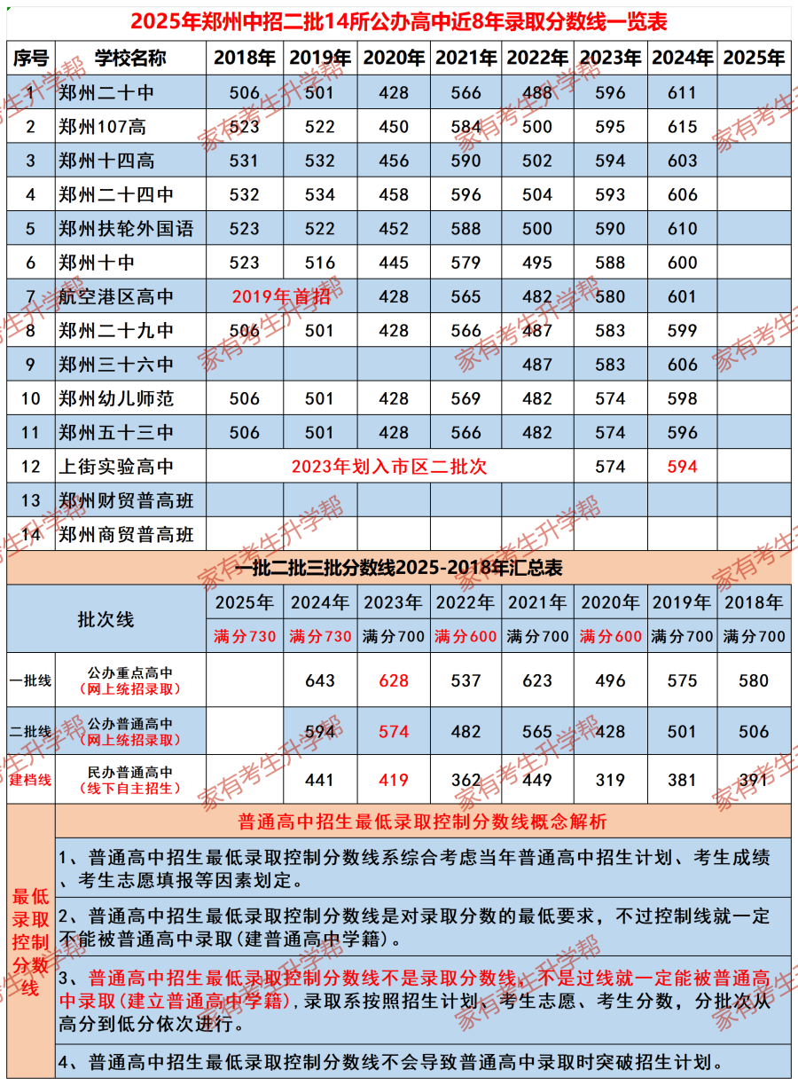 Q:58.一批二批公办高中历年分数线如何?