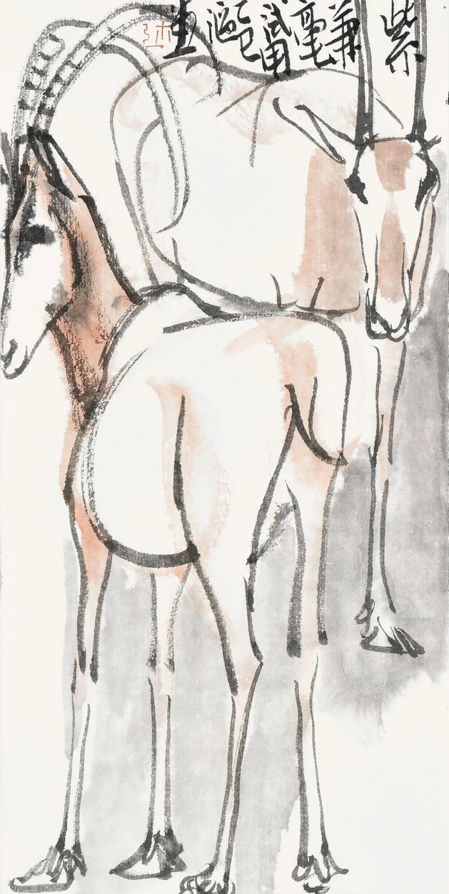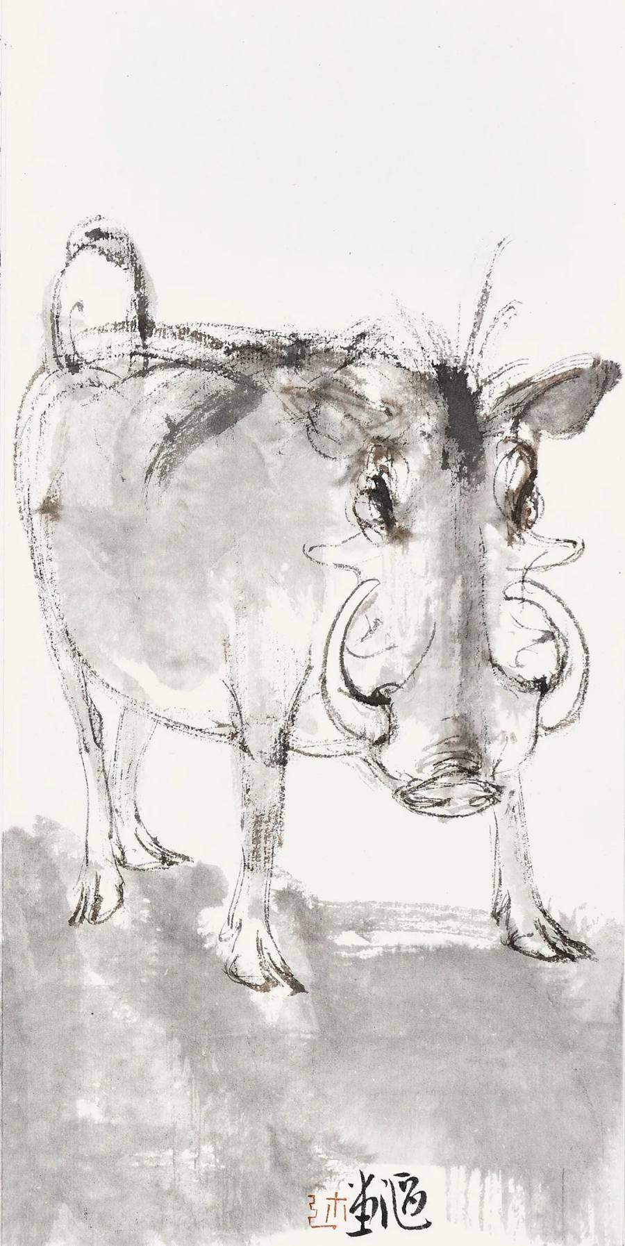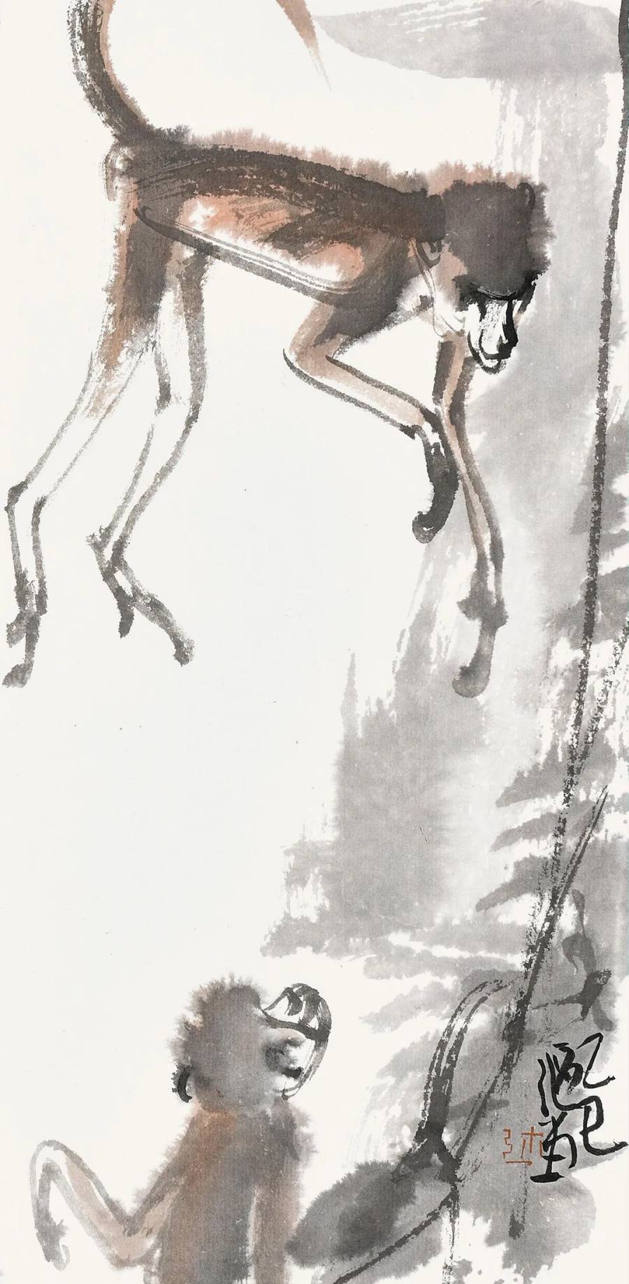 ◎ 画狒狒,纸有点皱巴,羊毫笔走在上边,像一个懦弱的人多历坎坷,一路记录下来,就出现苍茫如古拓片的感觉。