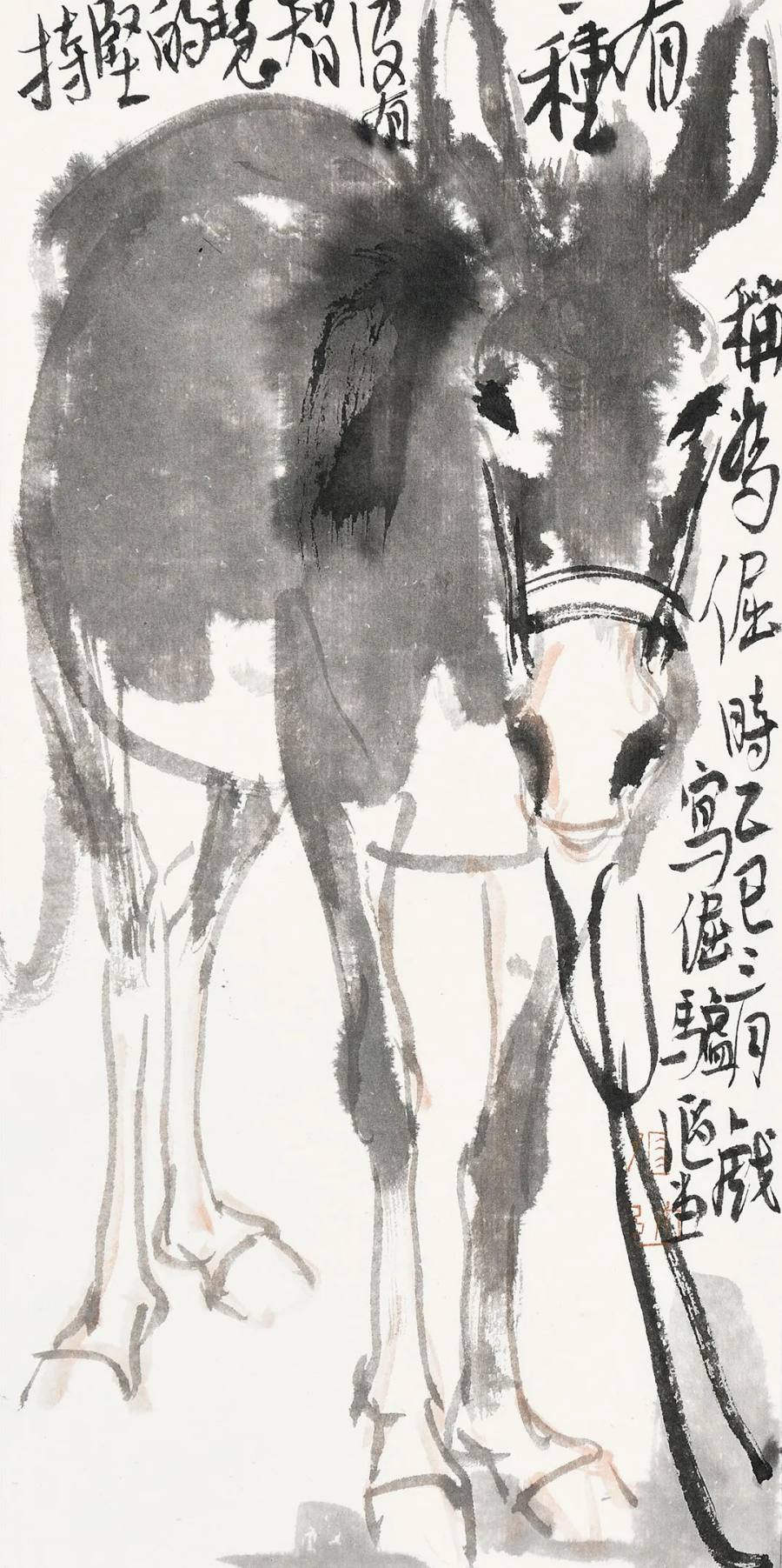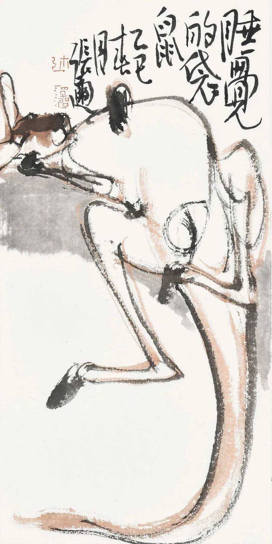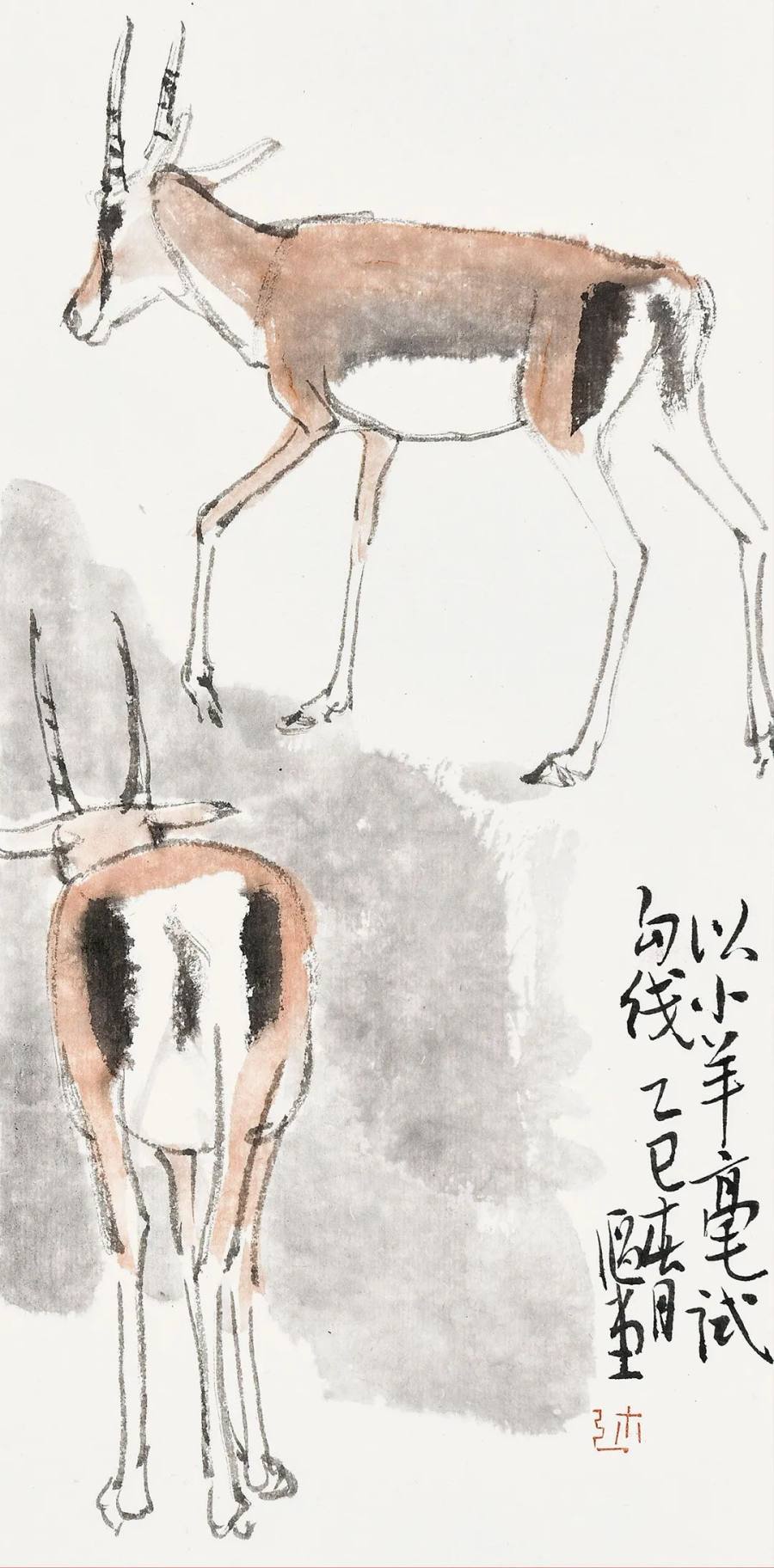 ◎ 画狒狒,纸有点皱巴,羊毫笔走在上边,像一个懦弱的人多历坎坷,一路记录下来,就出现苍茫如古拓片的感觉。