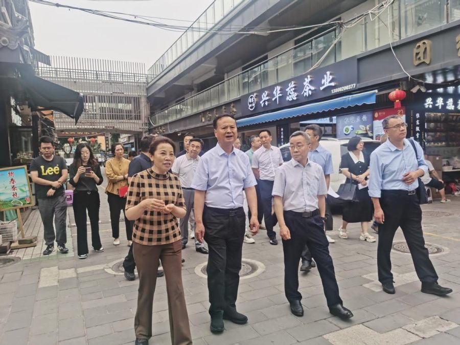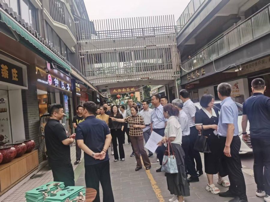 考察组一行参观了大西南茶城。作为西南地区最大的茶叶集散地,茶城始建于2000年,占地面积42.5亩,建筑面积超3.2万平方米,汇聚全国近20个主要茶产区的600余家商户。近年来,茶城通过建筑风貌提升、功能布局优化、产业文化植入等系统性改造,打造集线上线下互动、购物与体验相结合的茶文化特色街区。改造后的茶城通过优化空间布局、完善配套设施,为商户和消费者创造了更加舒适、便捷的交易环境,极大提升了消费者体验感,得到了考察组成员的一致好评。