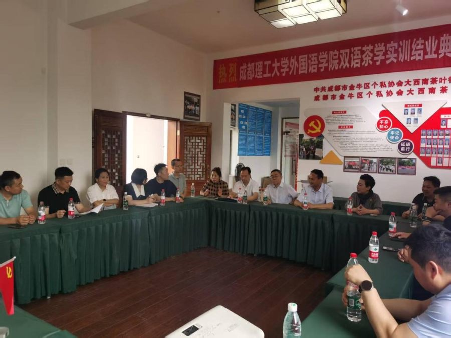 四川省个私协会副秘书长李泽龙、金牛区政协副主席郭进军接待考察组,金牛区城投肖总、五块石街道办事处更新科王博科长,及金牛区个私协会大西南茶叶行业分会会长王晓英,常务副会长唐章涛、胡彪、王飞跃,副会长刘晓红,副会长杨德均,以及其他协会骨干陪同调研。双方围绕茶产业转型升级、营商环境优化等议题展开深入探讨,为两地茶产业高质量发展提供新思路。
