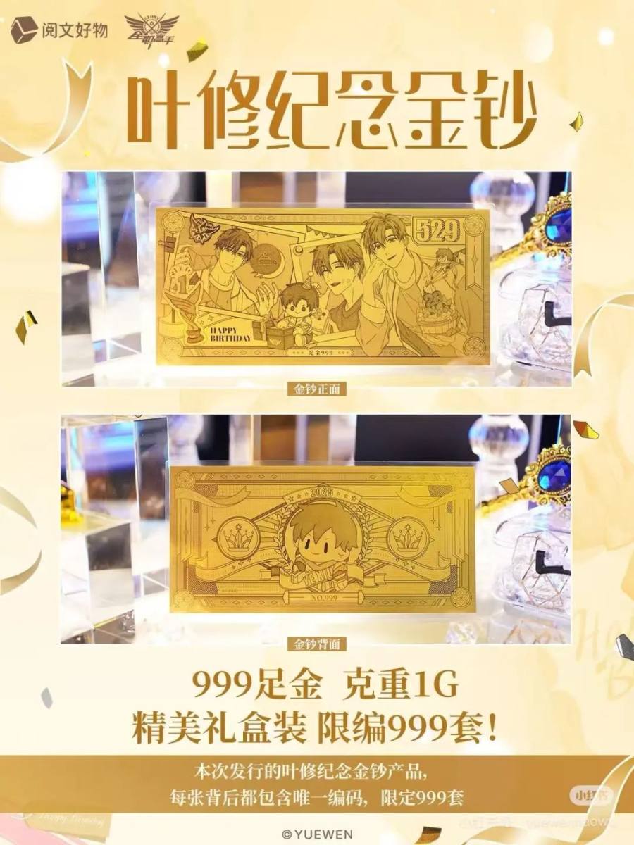 阅文好物为叶修生日而推出的纪念金钞(图源:阅文好物官方小红书账号)