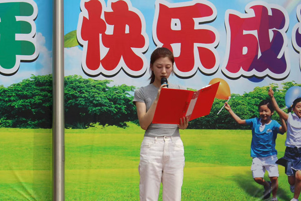 大队辅导员宣读苗圃小学一年级新队员名单。星星火炬,代代相传。来自高年级的少先队员代表为新队员们系上鲜艳的红领巾,红色的接力与传承中,童心与笑脸愈加闪亮!