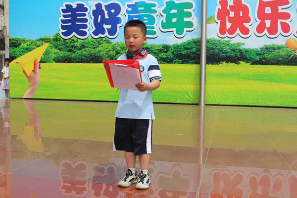 一一班王俊逸同学作为新队员代表发言:我们将时刻牢记自己是一名光荣的少先队员,用自己的实际行动为红领巾增添光彩。