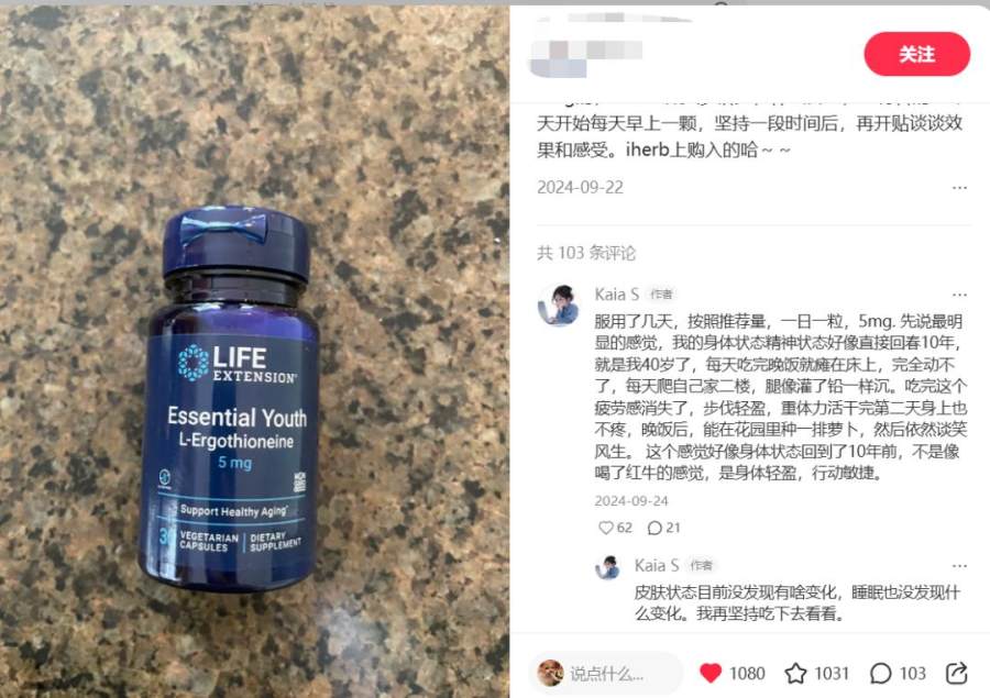 有习惯熬夜的网友表示,坚持吃一段时间,熬夜起来后脸上的暗沉和皮肤凹陷都会好一些;但也有不少网友提到,吃过似乎只对精力有所改善,“吃麦角硫因时我搭配了PQQ和辅酶q10,吃了半个月早上起来头不再昏昏沉沉,但是皮肤还是老样子。”