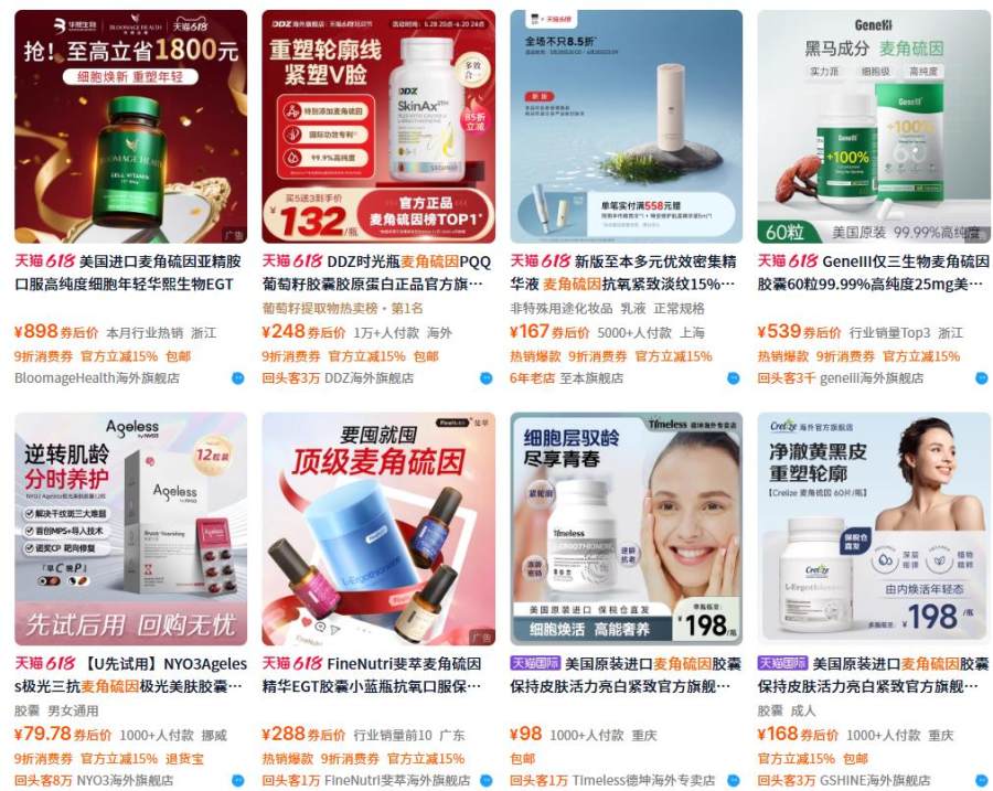 不过,在电商平台搜索“麦角硫因”,品牌在它卖点的宣传上相当“激进”:“抗衰之王”“4周养出少女肌”“1瓶=8次热玛吉”……“趣解商业”注意到,很多主打麦角硫因的护肤精华,都不敢如此保证效果;这款从菌菇中提炼来的成分,内服是否真的胜过外用?
