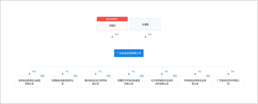 据《经济参考报》统计,宗庆后去世后“娃哈哈系”停工的企业超15家,娃哈哈集团元老杜建英在这些企业里几乎都持有股权。比如被关停的陕西娃哈哈乳品有限公司和沈阳娃哈哈荣泰食品有限公司,杜建英在其中均担任董事;再比如深圳娃哈哈荣泰实业有限公司和衢州娃哈哈启力饮料有限公司,两家公司共同的大股东为“广元金信投资有限公司”,杜建英持有这家公司40%的股权。